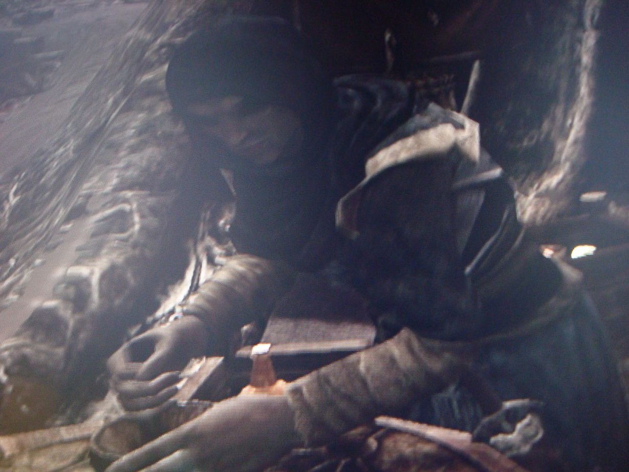 Inside the mine a couple were arguing. The old man seemed to want to explore the mine himself but the womer was trying to talk him out of it.