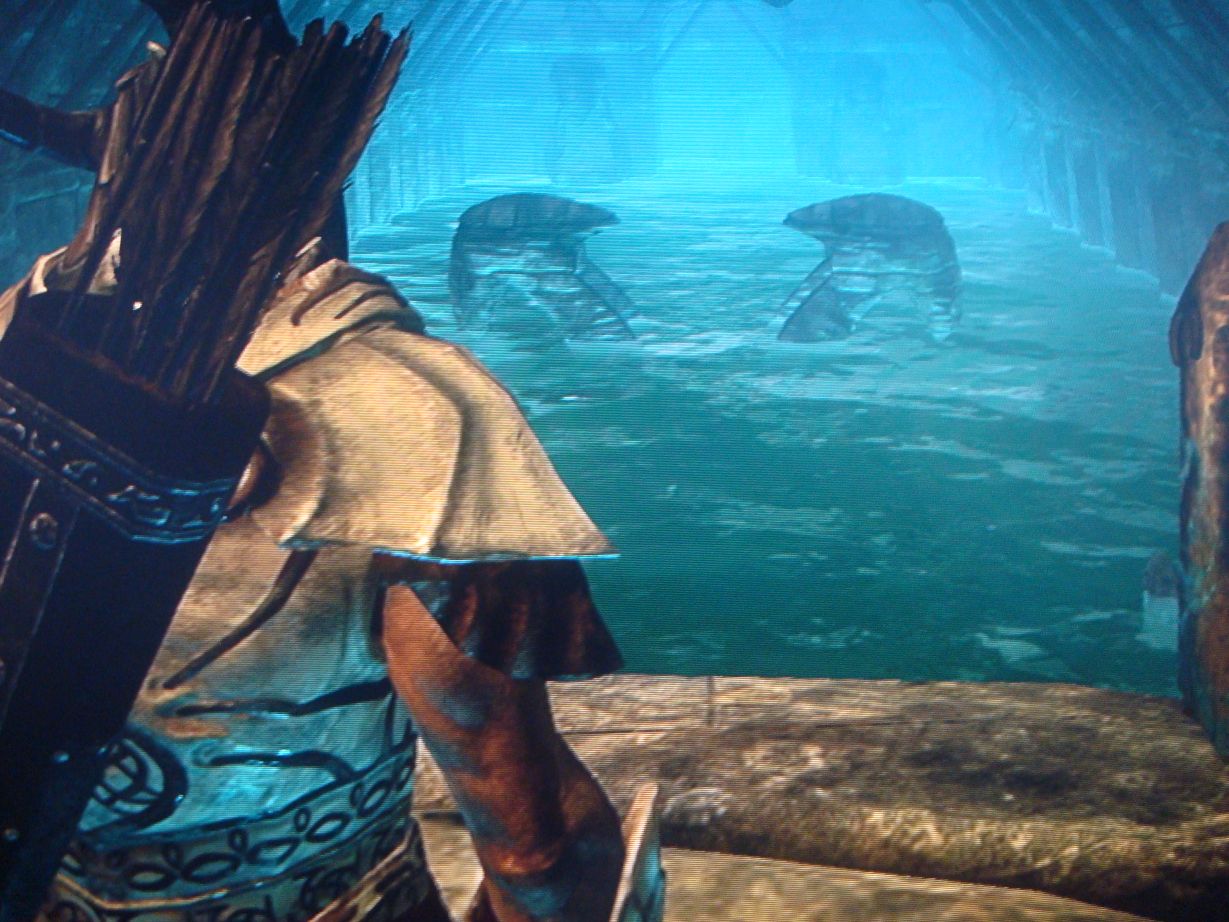 At the dock where I had previously met the Thalmor, I was attacked by a few mudcrabs, among them a particularly large specimen named Old Salty.