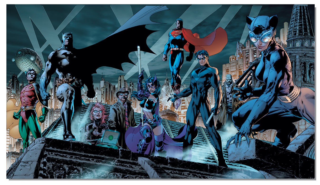 Batman, Robin, Batgirl, Catwoman, Nightwing, Alfred, Gordon, Cash, Talia Al Ghul