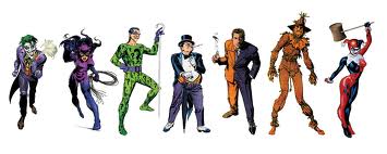 Joker, Harley, Two-Face, Poison Ivy, Penguin, Zsasz, Hush, Mr Freeze, Scarecrow, Ra’s Al Ghul, Black Mask